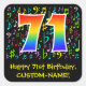 Este divertido, vibrante y colorido diseño de pegatina con temática de cumpleaños presenta un gran número "71" con un patrón inspirado en el gradiente del espectro arcoiris. También incluye el mensaje "Feliz cumpleaños número 71", y un nombre de personalizable. Parte del fondo presenta un patrón de varias notas musicales y símbolos con una variedad de colores y tamaños. Pegatinas con temas de cumpleaños como este pueden ser divertidos de usar como decoración para celebraciones de cumpleaños, o tal vez dar como regalo de cumpleaños, o tal vez ser usados cuando se envuelven regalos de cumpleaños para celebrar un compositor de canciones, un músico, un cantante, o el cumpleaños setenta de alguien más. [~Z0000423]