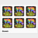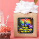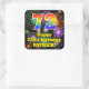 Este alegre y emocionante diseño de pegatina cuadrado con temática de cumpleaños presenta un gran número "72" con un colorido patrón inspirado en el gradiente del espectro de arcoiris, junto con el mensaje "Feliz cumpleaños número 72", y un nombre personalizado. El fondo presenta un patrón multicolor inspirado en la apariencia de los fuegos artificiales de celebración. Pegatinas divertidos, coloridos y personalizados como este pueden ser dados como regalo de cumpleaños, o usados al envolver regalos, o quizás usados como decoraciones de fiestas de cumpleaños cuando se celebra el cumpleaños setenta de alguien. [~Z0000579]