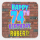 Este divertido diseño de pegatina cuadrado con temática de cumpleaños presenta el mensaje "FELIZ CUMPLEAÑOS 74″, con un colorido, vibrante, grafiti e inspiración de arte urbano callejero, además de un nombre de destinatario personalizado. El fondo está inspirado en una pared de ladrillo. Pegatinas divertidos y personalizados como este pueden ser dados como regalo de cumpleaños, o usados al envolver regalos, o quizás usados como decoraciones de fiestas de cumpleaños cuando se celebra el cumpleaños setenta y cuatro de alguien. [~Z0000535]