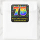 Este divertido, vibrante y colorido diseño de pegatina temático de cumpleaños presenta un gran número "75" con un patrón inspirado en el gradiente del espectro arcoiris, junto con el mensaje "Feliz cumpleaños número 75", y un nombre personalizado. Parte del fondo presenta un patrón de símbolos y notas musicales coloridas. Pegatinas con temática de cumpleaños como este pueden ser divertidos de usar como decoración de fiesta de cumpleaños, o tal vez dar como regalo de cumpleaños, o tal vez ser usados cuando se envuelven regalos de cumpleaños para celebrar los compositores de una canción, los de un cantante, los de un músico o el cumpleaños 75 de alguien más. [~Z0000423]