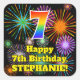 Pegatina Cuadrada 7.º cumpleaños: aspecto de los fuegos artificiales