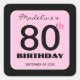 Pegatina Cuadrada 80.º Nacimiento Elegante PINK BLACK Nombre persona