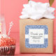 "Gracias por venir a mi fiesta de cumpleaños número 80". Hay plantillas de texto para que pueda personalizar fácilmente cualquier texto impreso en el centro del círculo. Este diseño es un patrón de número aleatorio azul y blanco, con el número de hito 80 repetido en tamaños y ángulos variados en una impresión completa. Hay una banda blanca y una placa en el centro para tu texto. Esta es una buena idea para envolver favores de fiesta para tu fiesta de cumpleaños número 80, sobre-la-colina, o para todas las ocasiones que presenten el número ochenta; sólo cambia el texto para coincidir con el evento.