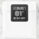 Este Roaring Twenties inspiró el diseño pegatina cuadrado de la celebración de 81 años con un nombre de personalizable, un intrincado estilo Art Déco inspirado en el número "81", el mensaje "¡PARTIDO DE CUMPLEAÑOS!" y un borde multilínea. Tiene un fondo de color negro de forma predeterminada, pero se puede personalizar a un color diferente, si se desea. Pegatinas elegantes con temas de cumpleaños como estos podrían ser distribuidos o usados en una fiesta de cumpleaños para alguien que está celebrando su cumpleaños ochenta y uno, o quizás usados al preparar invitaciones o regalos para un evento de este tipo. [~Z0000617]