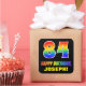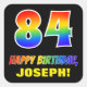 Este divertido, alegre y colorido diseño de pegatina con temática de cumpleaños presenta un gran número "84" y el mensaje "FELIZ CUMPLEAÑOS", ambos coloreados con un patrón inspirado en el gradiente del espectro del arcoiris, junto con un nombre personalizado amarillo en negrita. El fondo es negro de color. Pegatinas divertidos como este podrían ser usados cuando se envuelve un regalo de cumpleaños o se le da a alguien que está celebrando su cuarto cumpleaños, o tal vez se los entregue a los asistentes en una celebración de cumpleaños o fiesta. [~Z0000480]