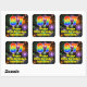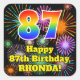 Pegatina Cuadrada 87º cumpleaños: Fuegos artificiales divertidos, ar