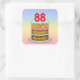 Pegatina Cuadrada 88º cumpleaños: pastel de diversión y velas + nomb