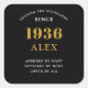 Pegatina Cuadrada 90th Birthday Name 1936 Black Gold Elegant Chic