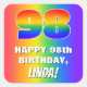 Pegatina Cuadrada 98º cumpleaños: Colorido, divertido patrón arcoiri