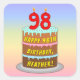 Pegatina Cuadrada 98th Birthday: Fun Cake and Candles + Custom Name