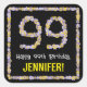 Pegatina Cuadrada 99º cumpleaños: número de flores florales, nombre