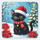 Pegatina Cuadrada A Black Festive Cat with a Christmas Background