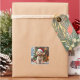 An adorable Christmas sticker with a festive poodle sitting in front of the fireplace on a cold winter day. A Christmas tree decorated and a festive background. Adorable to seal Christmas cards with.