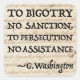 Una cita muy relevante de la Carta de George Washington a los judíos de Newport, Rhode Island (1790). Mostrado en el contexto de la Constitución de Estados Unidos. "Porque felizmente el Gobierno de los Estados Unidos, que no sanciona al fanatismo, a la persecución, a la no ayuda, sólo requiere que quienes viven bajo su protección, se consideren buenos ciudadanos".