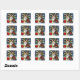 Adorable Christmas stickers with a cat sitting in the snow next to a Poinsettia with an illumstainted Christmas tree with lights.