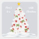 Pegatina Cuadrada A un árbol blanco de Navidad con rojo