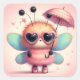Pegatina Cuadrada Abeja de burbujas con paraguas