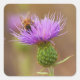 Pegatina Cuadrada Abeja ocupada en foto del cardo morado