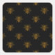 Pegatina Cuadrada Abejas de Relieve metalizado metálico de oro en ne