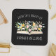 Pegatina Cuadrada Abrir flores de libro de la biblioteca de la placa