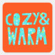 Este gráfico brillante muestra la frase "Acogedor y cálido" en azul brillante con copos de nieve. | Blanckslate | 141048D