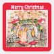 Pegatina Cuadrada Acogedores Navidades mantel con perro y gato