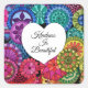 Pegatina Cuadrada Acuarela Arcoiris Mandala con corazón