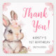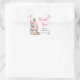 Pegatina Cuadrada Acuarela Cerezo en flor Conejo Cumpleaños