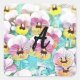 Pegatina Cuadrada Acuarela de panes rosados, amarillos, blancos Mono