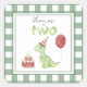Pegatina Cuadrada Acuarela Dinosaurio de Dos Rex Cumpleaños