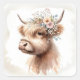 Pegatina Cuadrada Acuarela Vaca de las Tierras Altas Boho con Flores