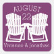Moderno boda de temática playera con tumbonas adirondack de color blanco. Personaliza con los nombres de la pareja y la fecha especial. Cambiar el color de fondo como prefiera.