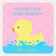 Pegatina Cuadrada Adorable Baby Shower amarillo azul rosa goma Ducky