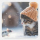 Pegatina Cuadrada Adorables gatitos y ratones en la nieve juntos