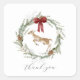 Pegatina Cuadrada Adorables Navidades de ciervos Wreath Red Bow Grac