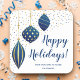 Pegatina Cuadrada Adornos Navideños de Oro Azul y Puntos Fiesta