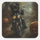 Pegatina Cuadrada Affenpinscher Riding Motorcycle Halloween Scary