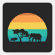Pegatina Cuadrada Africa Sunset Con Elefante Y Gnu Retro