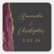 Pegatina Cuadrada Agate Burgundy Gold Script Dark Boda