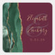 Pegatina Cuadrada Agate Emerald Green Gold Script Burgundy Boda