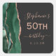 Pegatina Cuadrada Agate Emerald Green Rosa Oro Oscuro 50 cumpleaños