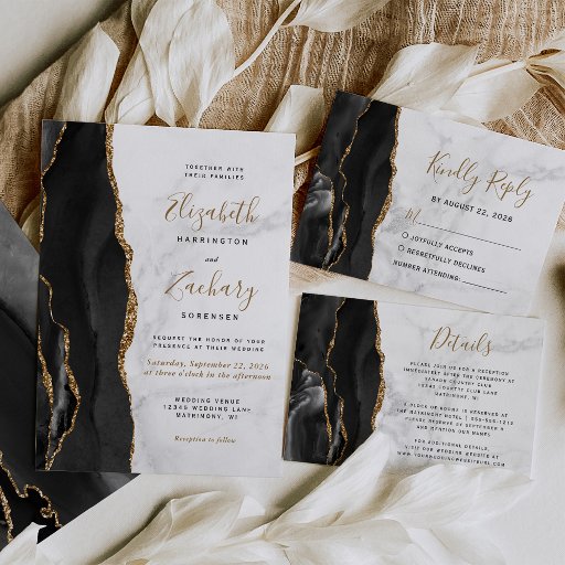 Black Gold Agate White Marble Script Wedding SuiteDiseñado por Akhates Designs