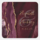 Pegatina Cuadrada Agate Geode Script Burgundy Gold Boda