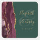 Pegatina Cuadrada Agate Geode Script Burgundy Gold Green Boda