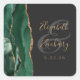 Pegatina Cuadrada Agate Geode Script Emerald Green Gold Dark Boda