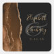 Pegatina Cuadrada Agate Geode Script Mocha Brown Gold Black Boda