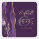Pegatina Cuadrada Agate Geode Script Purple Gold Plum Boda