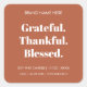 Esta moderna etiqueta de velas muestra las inspiradoras palabras Grfatídicas. Gracias. Bendita. en tipografía blanca en un cálido fondo de terracota. Perfecto para otoño, día de Acción de Gracias o vacaciones, este pegatina cuadrado es ideal para velas de soja, velas de tarro o empaque de pequeñas empresas. El diseño minimalista combina el encanto rústico con la elegancia moderna, lo que lo convierte en una elección versátil para los amantes de las velas hechas a mano, los regalos y la decoración casera. Añada un toque estacional acogedor a sus productos o a los proyectos de vela DIY con esta etiqueta elegante.