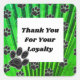 Este pegatina de apreciación empresarial presenta un patrón de huellas de pata negra en un fondo de patrón abstracto verde brillante. En el pegatina aparecen pequeñas huellas de pata negra. Un gran cuadrado sólido te da espacio para tus palabras de agradecimiento a tus fieles clientes. Personalizar rápida y fácilmente.