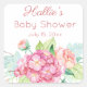 Pegatina Cuadrada Agradecimiento para Baby Shower de hortensia y peo